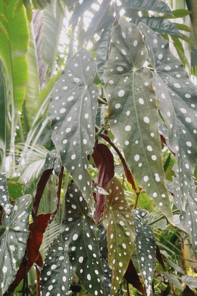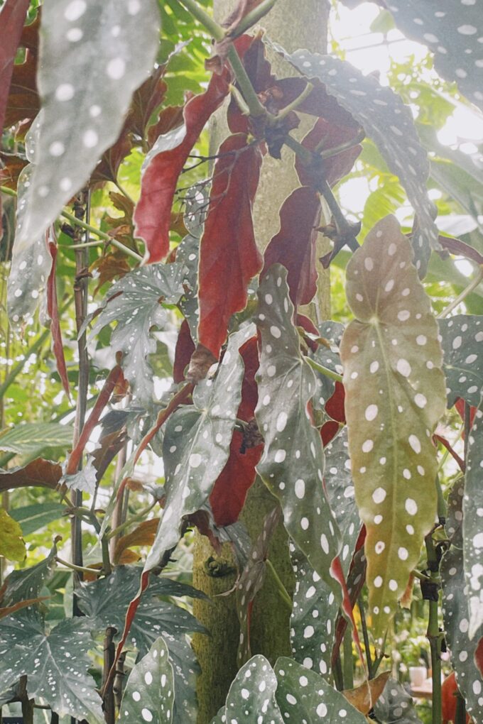 原種だけでも1400を超える種類があります。左右非対称の形カラーと模様が独特な葉がひときわ目を引きます。ベゴニアの中でも特に強健なため初心者向けのベゴニアです。